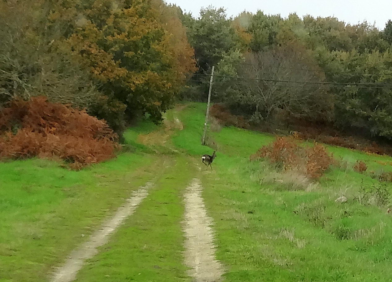 Dese xeito chegaremos á estrada OU-0209, que cruzaremos para introducirnos na Facenda do Agro, un lugar de cría sostíbel de vacún de carne con magníficos exemplares de razas Salers e Cachena. Ascendendo pola pista da explotación gandeira accederemos á Chaira, unha penichaira de intensa ocupación Neolítica que a día de hoxe segue coas mesmas funcións productivas que lle outorgaron os primeiros gandeiros da nosa terra. A subida á Chaira merece a pena, pois ademáis dun fermoso bidueiral e das tumbas megalíticas que se conservan na planicie, disfrutaremos dunha gran vista sobre a paisaxe das Terras de Celanova, salpicadas de bosque atlántico caducifolio.