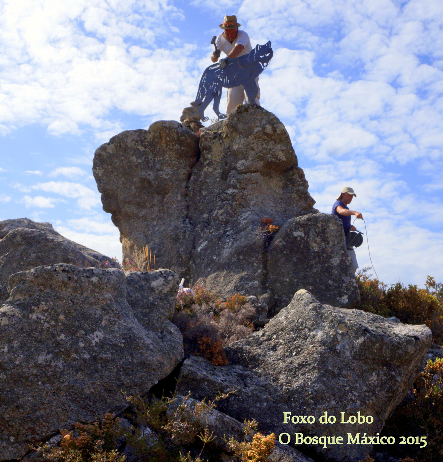 A obra promovida polo Concello de Lobios que será executada en 33.000 €, foi autorizada pola Dirección Xeral de Patrimonio Cultural, conta cunha axuda dos fondos AGADER, e co permiso de acceso aos terreos da Comunidade de Montes de Guende. Á súa vez, conta coa dirección técnica dos arqueólogos Celso Hugo Barba e David Pérez López, e coa asesoría científica e escultorica do escultor da Baixa Limia, Toño Monteiro. Con el censo provincial de lobos aún sin publicar, los últimos datos oficiales (2002) hablan de entre 59 y 70 grupos familiares en toda Galicia, que suman unos 600 ejemplares. “En Ourense habería unhas 25 manadas. É posible que dende o 2002 ata agora, producírase un lixeiro incremento dado o volume das manadas da zona onde traballamos.