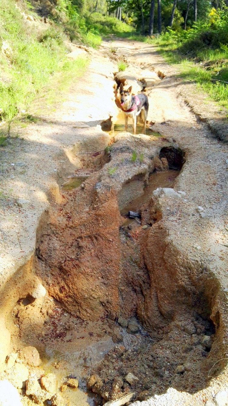 Las riadas del invierno pasado han provocado la apertura de grandes grietas en el camino natural